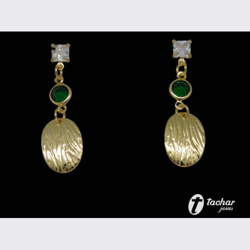 Folheados Ouro - Brincos - 03 A 04 CM - BR. FO 39MM PENDENTE VERDE TRANSPARENTE