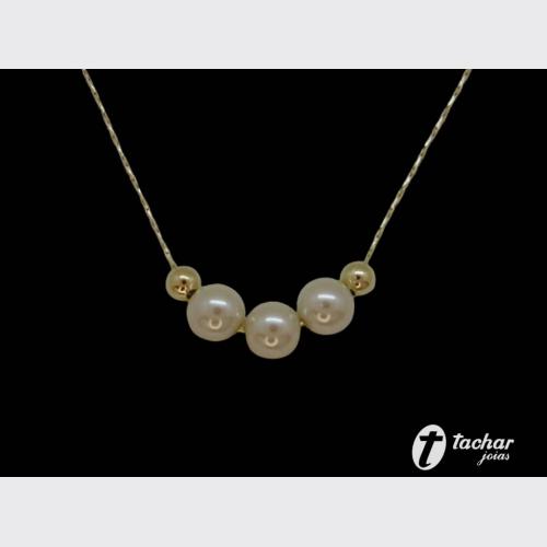 Folheados Ouro - Correntes - GARGANTILHAS - GAR. FO 45CM 3 PEROLAS 2 BOLAS